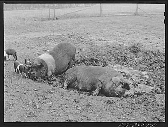 . For whatever reason those pictures just offer up some of what my heart and mind needs from time to time. I was looking at that book tonight and that led me to looking up a few things on-line, which is how I found the picture above. Those are some pigs at the Iowa State University research farm circa 1940 (I believe). I liked the picture …